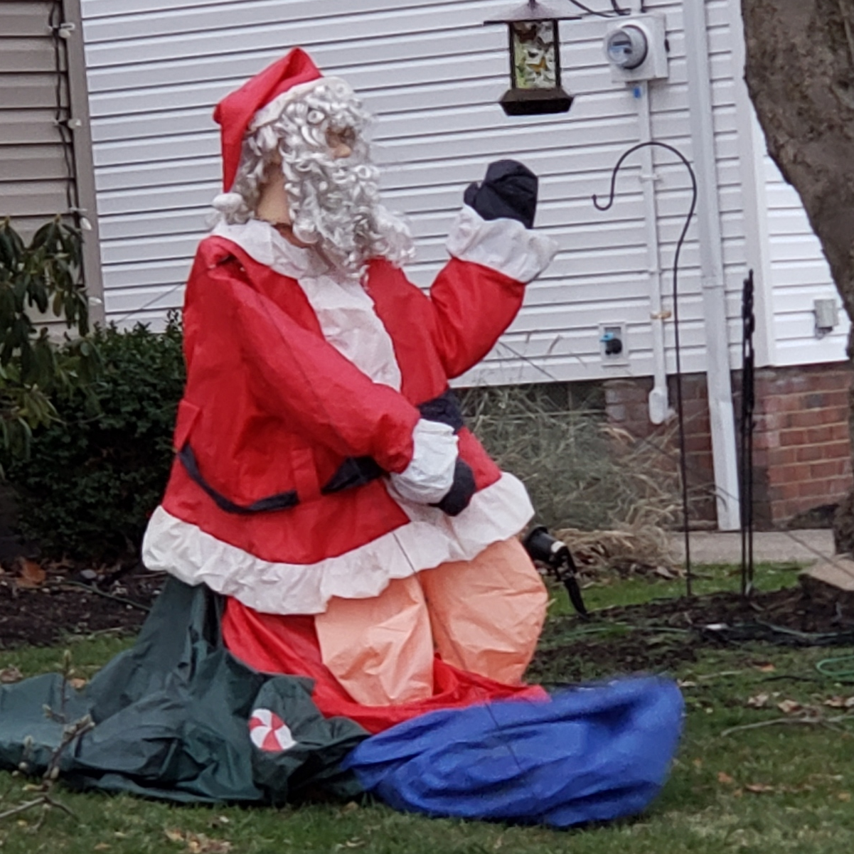 I noticed this on our walk this morning. I don't know how many times I've walked past this fully blown up at night and not realized what I was seeing. I have to pay attention now, to see if his pants are pulled up when he's fully inflated. THIS IS SO NOT RIGHT!
